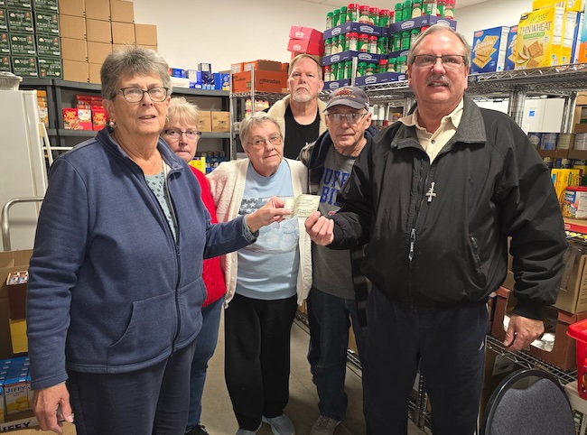 Volunteers in the photo at the food pantry are from left Donna Poore, Missy Schening, Sheila and Dan Tabor, and Mike Yeager in the back. On the right is Dave Berry, president of the VFW Auxiliary 1483 in Medina. The VFW Auxiliary wishes to thank all the volunteers serving at the food pantry for their dedication and time they give to others in need.