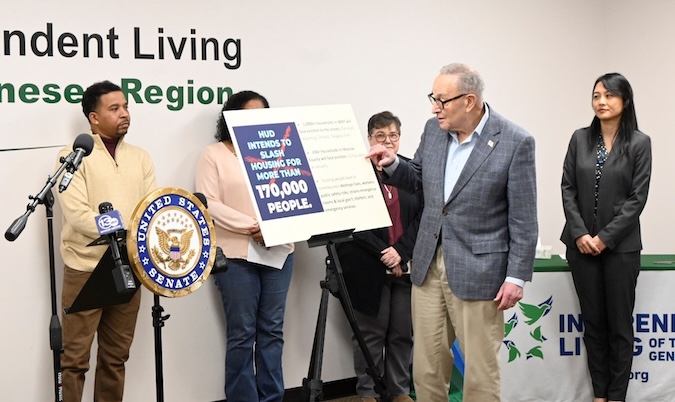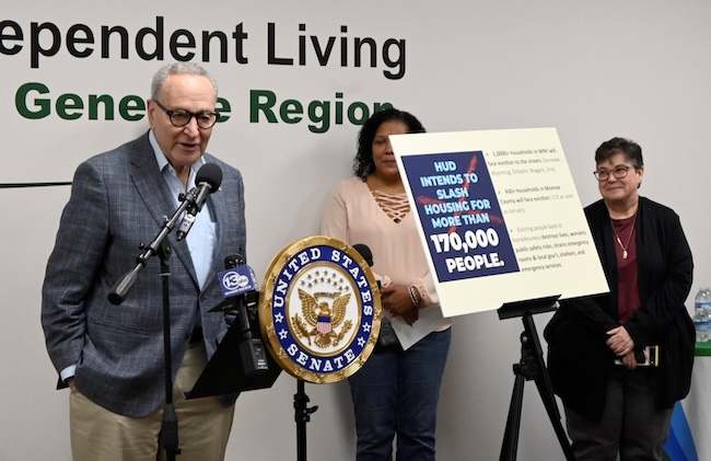 Schumer met with families and housing advocates at Independent Living of the Genesee Region. He said 1,500 in the Rochester-Finger Lakes & WNY regions could face potential eviction in the middle of winter due to cuts at the federal level.