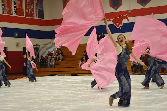MEDINA – The varsity winterguard for Medina performs on Saturday during its ColorBurst home show at Medina Junior-Senior High School.