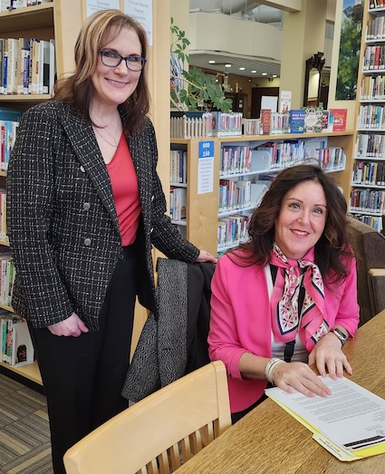 Photo by Ginny Kropf: Renee Hungerford, executive director of Community Action of Orleans and Genesee, left, and Karen Kinter, CEO of Oak Orchard Health, posed for this picture in Hoag Library when they announced their acceptance into the Health Foundation of WNY’s Health Leadership Fellows 18-month program. They graduated from the program on Nov. 16.