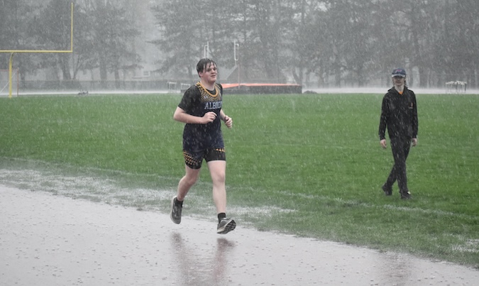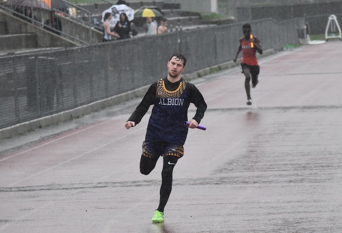 Albion begins defense of its N-O boys track title with a rainy victory at Akron