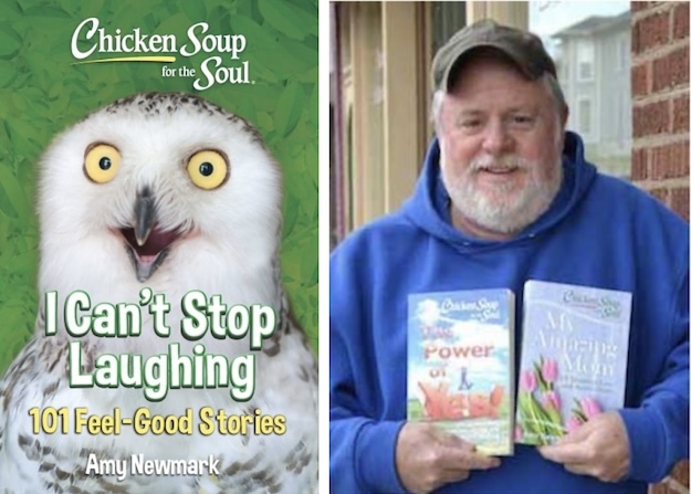 (Left) This is the cover of the latest Chicken Soup for the Soul book, I can’t Stop Laughing, which featured 101 humorous tales and feel-good stories. (Right) David Hull, shown in a file photo from 2018, has been featured in about 30 of the Chicken Soup for the Soul books.
