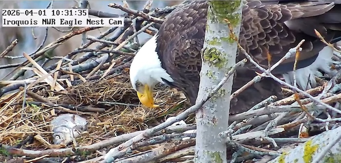 BASOM – A crack in the shell of a bald eagle egg was spotted and confirmed late Wednesday morning in Basom at the Iroquois National Wildlife Refuge.
