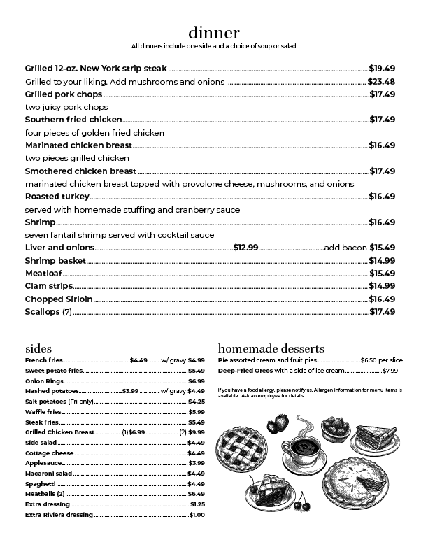 If you have a food allergy, please notify us. Allergen information for menu items is available.