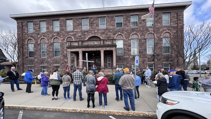 The Cross Walk began at City Hall and then about 60 people proceeded to several stops in the downtown area, Canal Basin and on West Avenue. At each stop, the group read a passage from the Bible and sang a hymn.