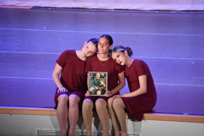 Three seniors in the dance program – from left Ava Ludwick, McKinley Knight and Kaitlynn Basinait – did a senior dance together and dedicated the performance to Caldwell, who passed away at age 93 on April 16.