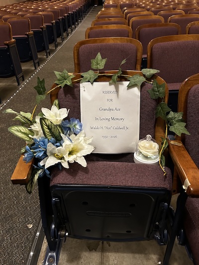 Photo by Marsha Rivers: A seat in the front row was reserved in honor of “Grandpa Ace” for Saturday’s dance recital in the Albion Middle School Auditorium.