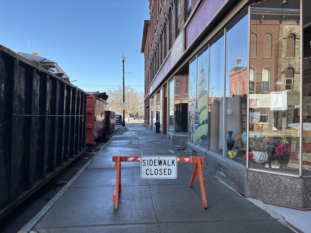 The sidewalk in front of 20 East Bank St. remains off limits to pedestrians.