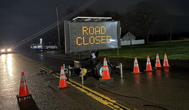 Part of Route 98 in Albion was flooded between Allen Road and Route 31A, prompting the road to be closed to traffic. This photo was taken about 11 p.m.