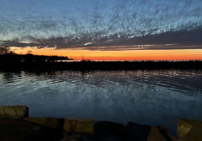 Photo courtesy of Marsha Rivers: The sun sets on Friday evening over Lake Ontario, creating some dramatic light.