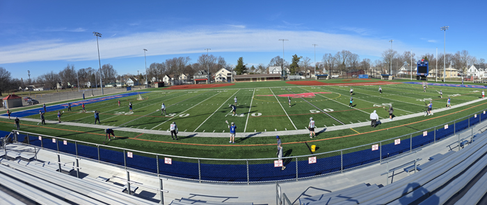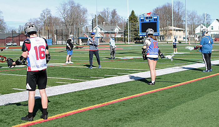 Photos by Cheryl Wertman – Spring practice got underway this afternoon for area high school baseball, softball, tennis, track and lacrosse teams. Here members of the Medina lacrosse squad work out at Vets Park as the Mustangs begin preparation for the March 24 season home opener against Tonawanda.