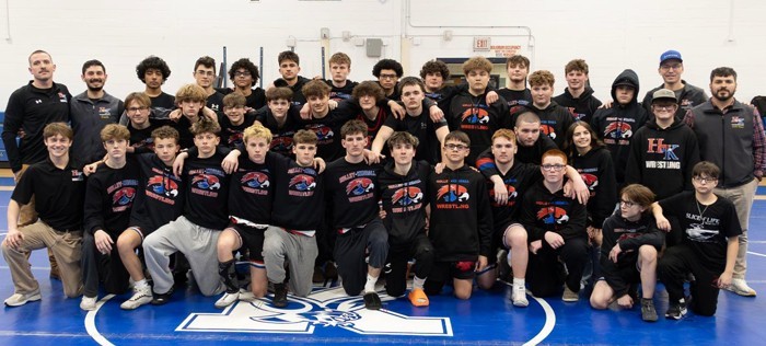 Jeremy Lutes (103), John Blosenhauer (110), Jack Brueilly (138), Brenden Eichas (144). Aiden McGrain (215) and Immanuel Cornell (285) all registered pins for Holley-Kendall and Matteo Caterisano (175) had a major decision win.