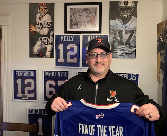File photo by Tom Rivers: Geno Allport proudly displays his love for the Buffalo Bills at his Albion home. He was the Buffalo Bills Fan of the Year in 2021. The Allports have been season ticket holders since 1974, and Geno was also recognized for his leadership with Albion youth football.