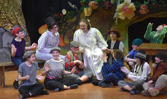 LYNDONVILLE – Lyndonville Central School is performing Peter Pan for the school’s annual musical. The top photo shows the cast on Friday’s opening night. There are more performances at 7 p.m. today and 2 p.m. on Sunday.