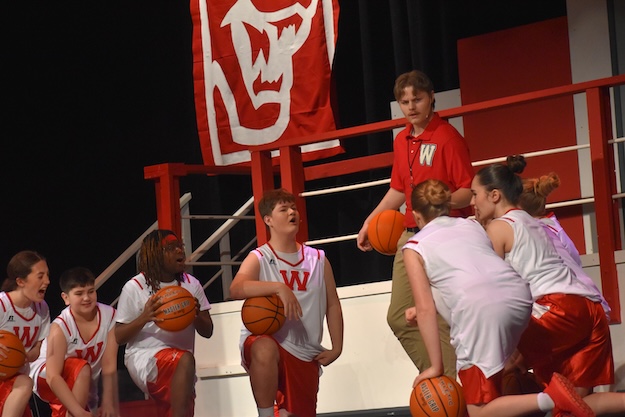 Jackson McGrath plays Troy Bolton, the star of the basketball team. He also is interested in theater to the dismay of the his father, the basketball coach. In this scene, Troy and the team sing, “Get’cha Head in the Game.” Troy is distracted by a new girl in the school, Gabriella, and the idea he might enjoy singing.