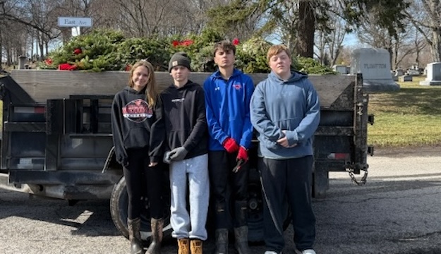The group removed the wreaths from Boxwood, St Mary’s, and Sacred Heart cemeteries on Sunday in preparation for spring cleanups. Picture below if some of the volunteers that helped.
