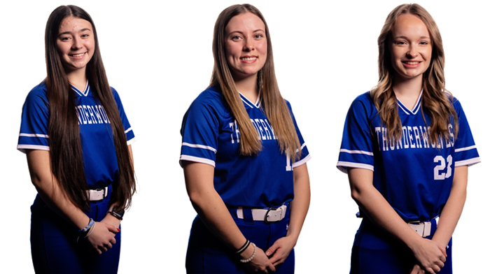 Contributed Photos – This season’s SUNY Niagara softball team includes a trio of former Niagara-Orleans League student-athletes. They include, from left, Medina graduate Eva Lacy a freshman outfielder, Barker grad Mia Herman a sophomore outfielder and Wilson grad Sidney Ziemendorf a sophomore outfielder.