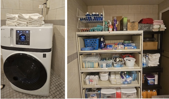 Provided photos: (Left) This laundry unit was purchased courtesy of Health Foundation for Western and Central New York project budget. (Right) This photo shows personal care and laundry supplies for participating students.