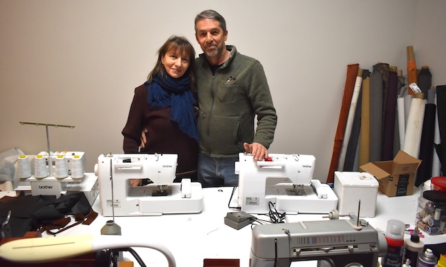 Photos by Tom Rivers: Jon Rissinger and his wife Galina are shown inside Sew-It-Seams Upholstery, which they opened in October at 28 East Bank St.