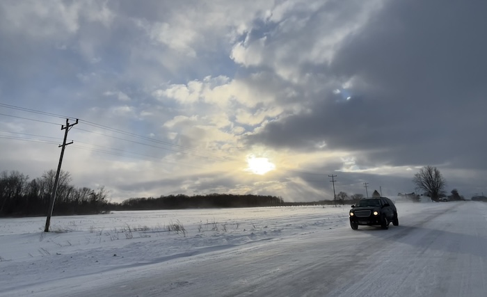 Photo by Marsha Rivers: A motorist drives on Ashwood Road in Carlton last week during frigid temperatures.
