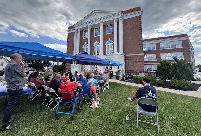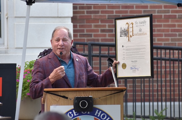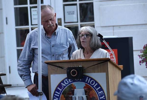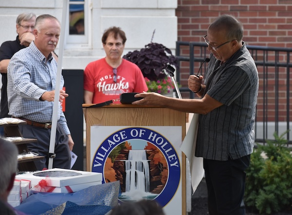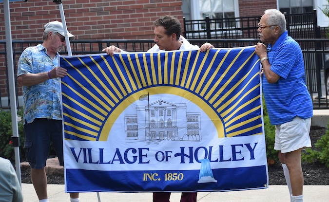 The ceremony was held in front of the old Holley High School, which has been transformed into the village offices and 41 apartments for senior citizens.