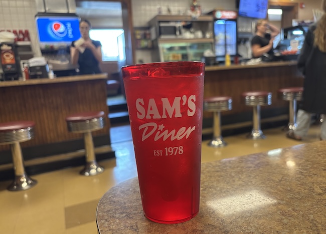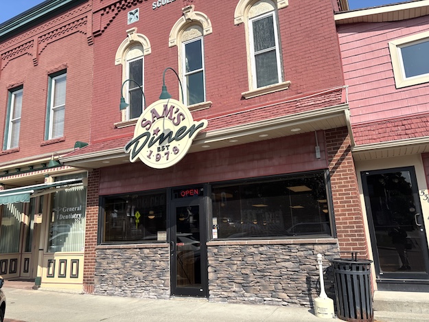 The back brick wall collapsed on March 1, 2024 putting the future of Sam’s Diner in doubt. The wall has been repaired and other improvements have been made to the diner.