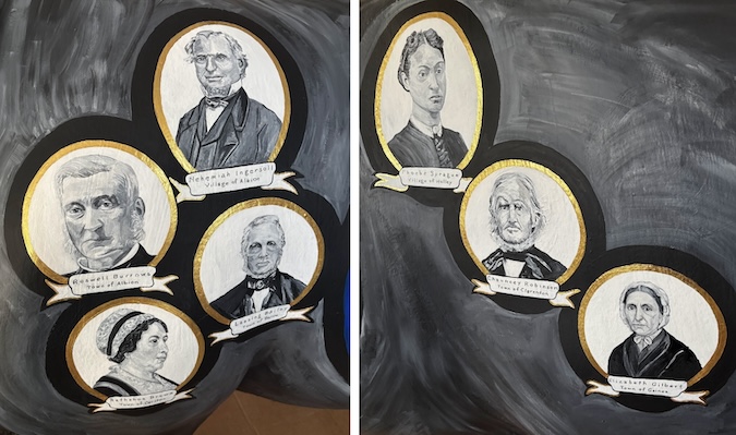 Arad Thomas’s book included photos of 12 of the 14 settlers painted by Culhane. She used AI to get a sketch for pioneers, Bathshua Brown and Elizabeth Gilbert. Culhane provided some details about their lives to help create the depictions from AI.