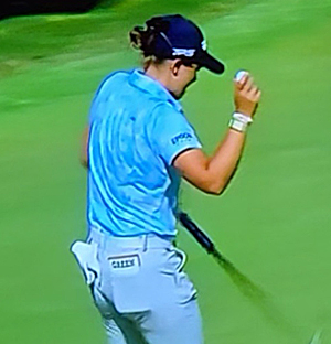 Being among the leaders Green was shown on several holes during the Golf Channel’s three hour telecast this evening including a shot of her making a huge birdie putt on 18 to keep a hold of a share of sixth place.