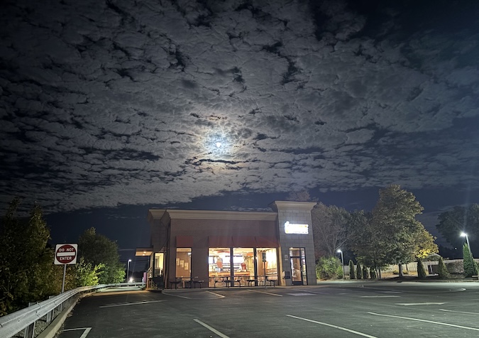 ALBION – It was a dramatic sky tonight with a Harvest Moon. The top photo was taken at 8:27 of the Dunkin’ Donuts in Albion.