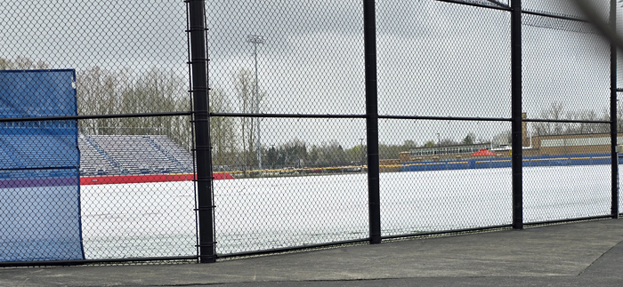Photo by Cheryl Wertman – This view of snow covered Medina’s Vets Park taken this morning tells the story as the very chilly wintery like weather has caused the postponement of a large number of area high school contests including the Medina vs. Albion and Barker vs. Roy-Hart baseball games. Half a dozen softball games have also been postponed including Albion vs. Medina, Akron vs. Roy-Hart, Newfane vs. Barker, Lyndonville vs. Elba, Kendall vs. Pembroke and Wheatland-Chili vs. Holley. The Roy-Hart vs. Medina and Newfane vs. Albion tennis matches have also been postponed. The Roy-Hart at Barker baseball game is scheduled to be made up at 7:30 p.m. Tuesday following the Notre Dame at Barker softball game. The Roy-Hart at Medina tennis match is also slated to be made up on Tuesday.